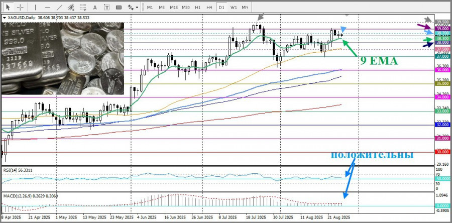Серебро не готово снижаться на фоне растущего спроса на защитные активы. Инвесторы проявляют повышенный интерес к драгметаллам из-за опасений относительно независимости Федеральной резервной системы. Ситуацию обострило заявление Дональда Трампа о намерении отстранить от должности члена совета директоров ФРС Лизу Кук, которую он обвинил в причастности к махинациям с ипотекой.