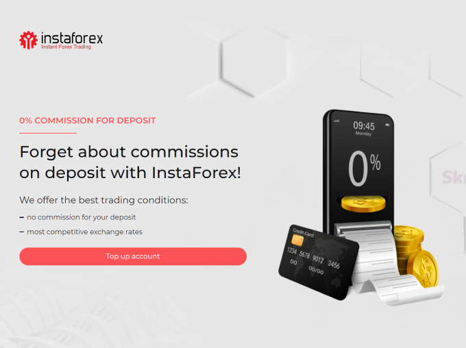 ইন্সটাফরেক্স সবসময় সবচেয়ে সুবিধাজনক বিনিময় হার প্রদান করে এবং ডিপোজিটের জন্য কোন কমিশন চার্জ করে না। একজন গ্রাহক ট্রেডিংয়ের কোন পদ্ধতি ব্যবহার করছেন তা বিবেচনা না করেই - ডিপোজিটকৃত পরিমাণ কোনো ফি ছাড়াই সম্পূর্ণভাবে ট্রেডিং অ্যাকাউন্টে জমা হয়।