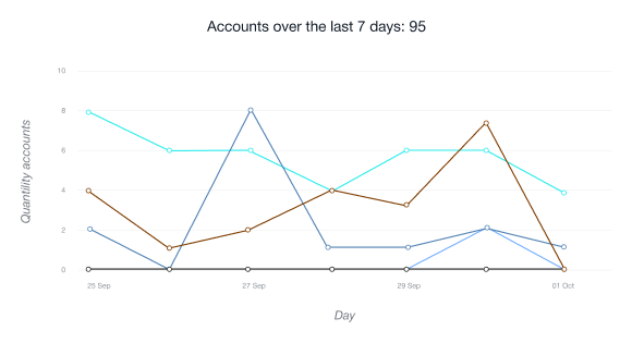 • Puede rastrear las estadisticas generales de las cuentas registradas, senalar los meses fructiferos, marcar un descenso en la actividad de referencia o encontrar las razones para buscar una nueva estrategia de marketing mas eficaz.