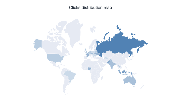 • Las estadisticas de distribucion de clics muestran los paises con las tasas mas altas de trafico del enlace de afiliado.