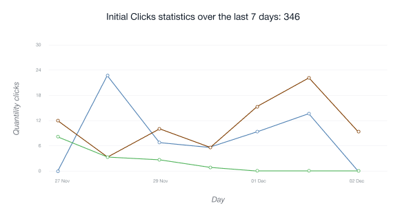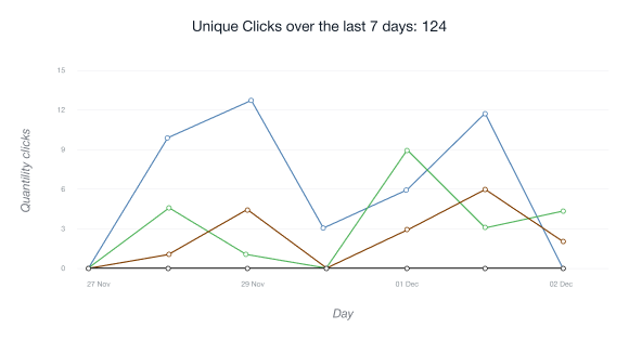 • El grafico de clics unicos muestra el numero de usuarios que siguieron su enlace de afiliado por primera vez desde una direccion IP determinada en las ultimas 24 horas.