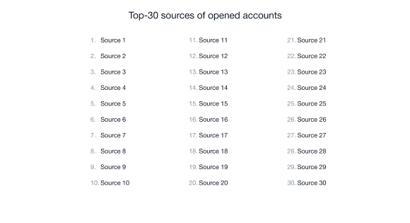 Top-30 fuentes de cuentas abiertas