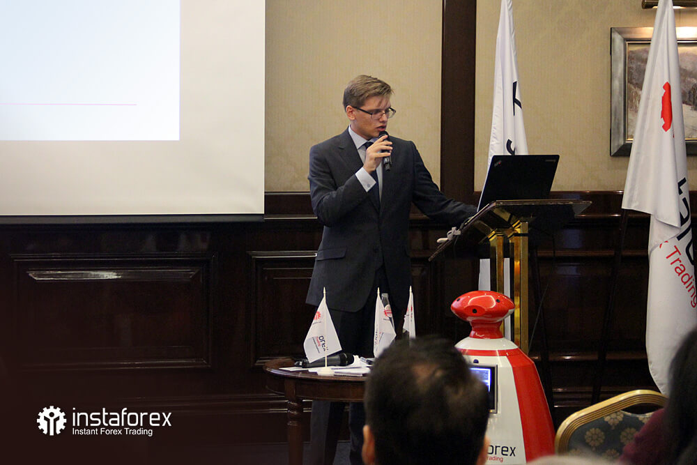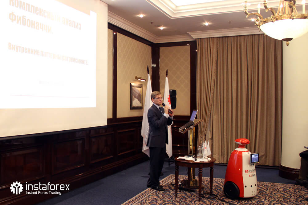 Самым долгожданным для большинства присутствующих было выступление аналитика Глеба Кабанова на тему: «Динамика рынка облигаций и ее влияние на рынок Forex». Наибольшее же количество вопросов было к Виктору Першикову – преподавателю образовательных курсов санкт-петербургского офиса компании ИнстаФорекс – по-поводу применения комплексного технического анализа Фибоначчи. Обсуждение докладов продолжалось даже во время бесплатных кофе-брейков от компании ИнстаФорекс.